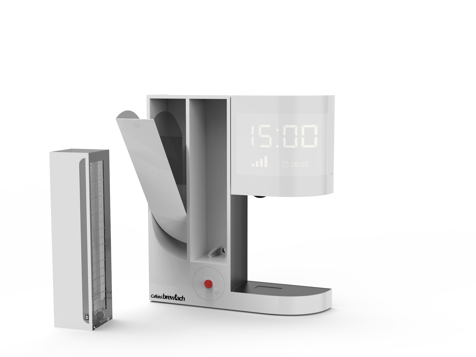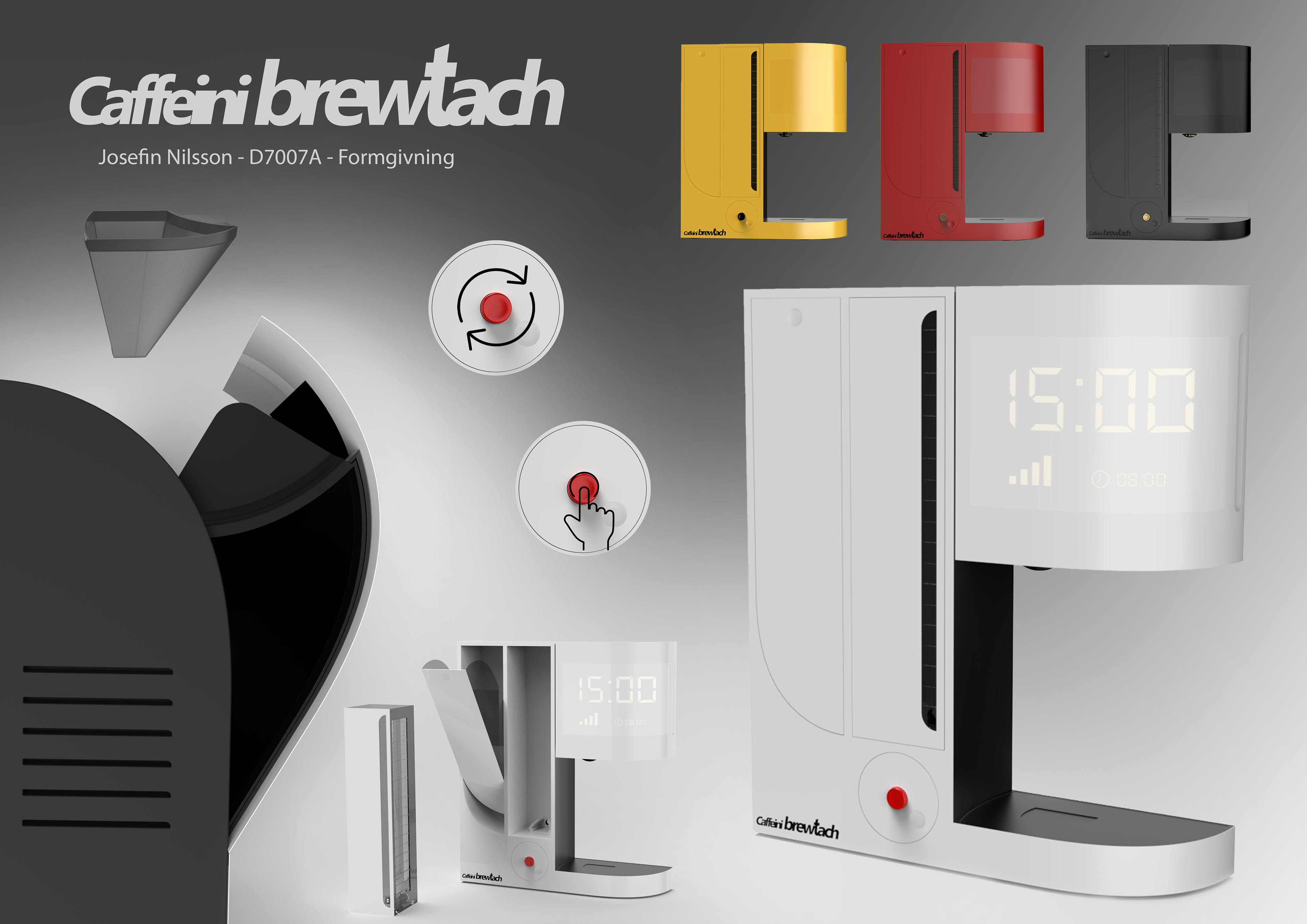 Caffeini brewtach is a coffee maker concept developed during the D7007A - Formgivning (Design) course, where the brief was to design a home electronic device with myself as the client.