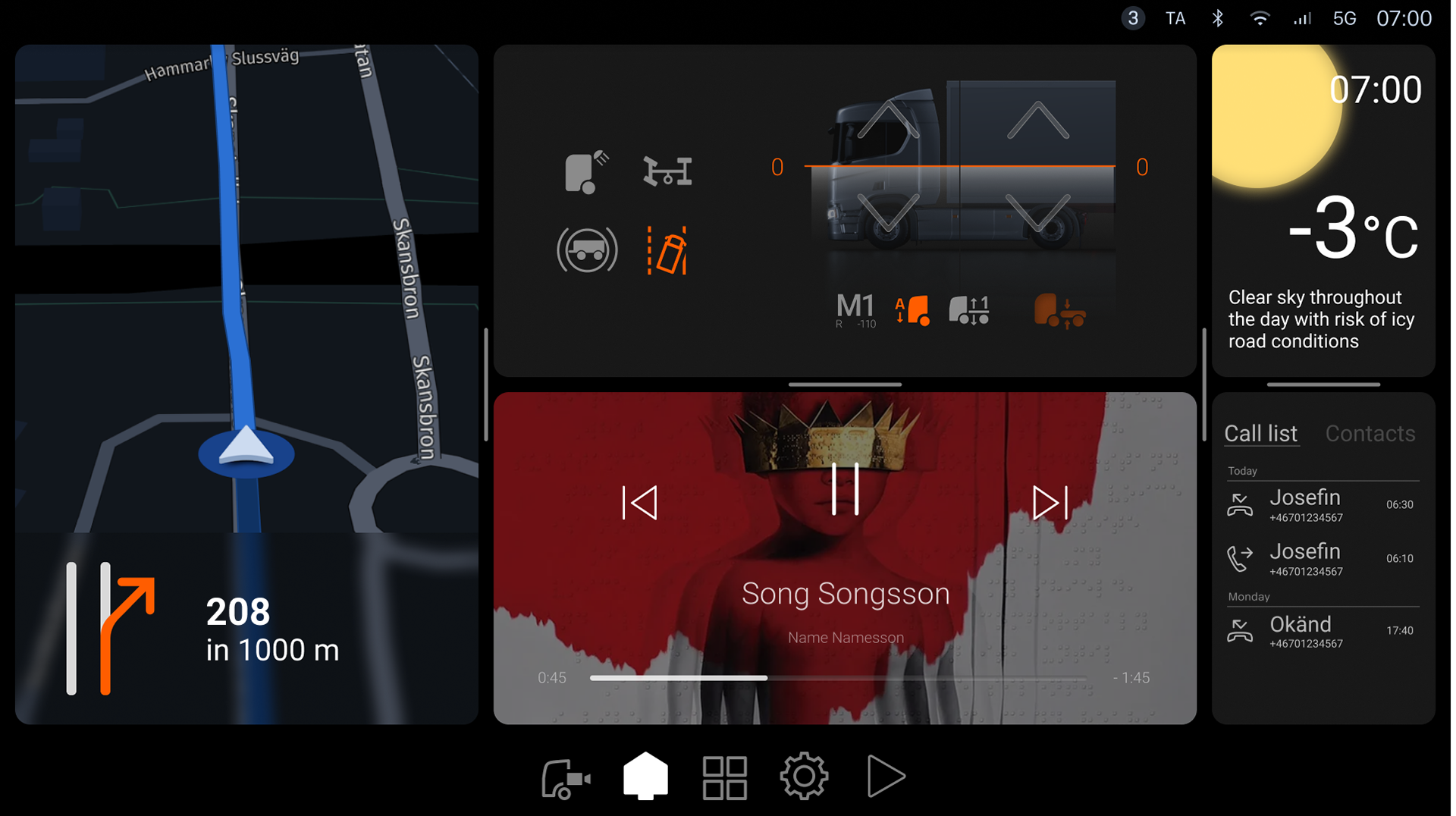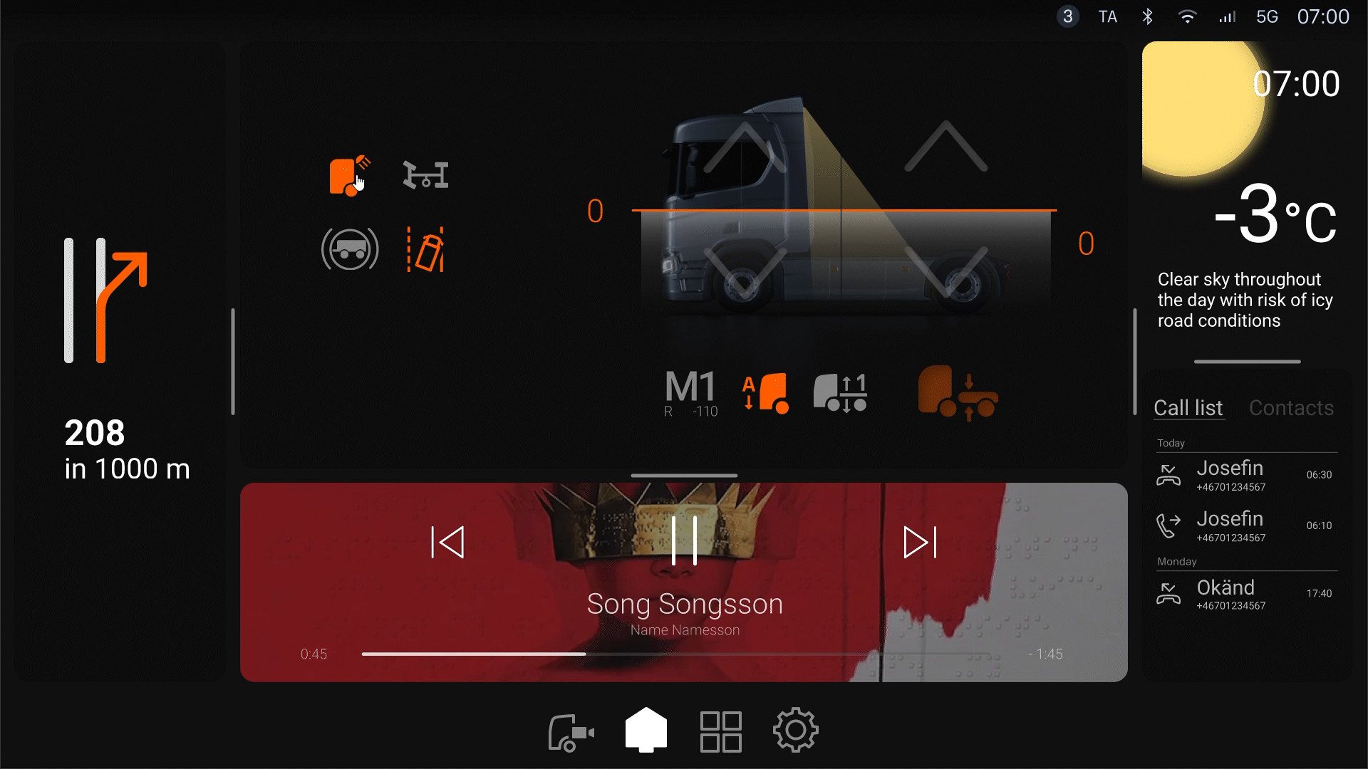 The final design introduces a clean, priority-based layout with consistent interaction patterns and streamlined flows. Accordning to the drivers who user-tested the layout this helps drivers complete common tasks faster and with fewer distractions.