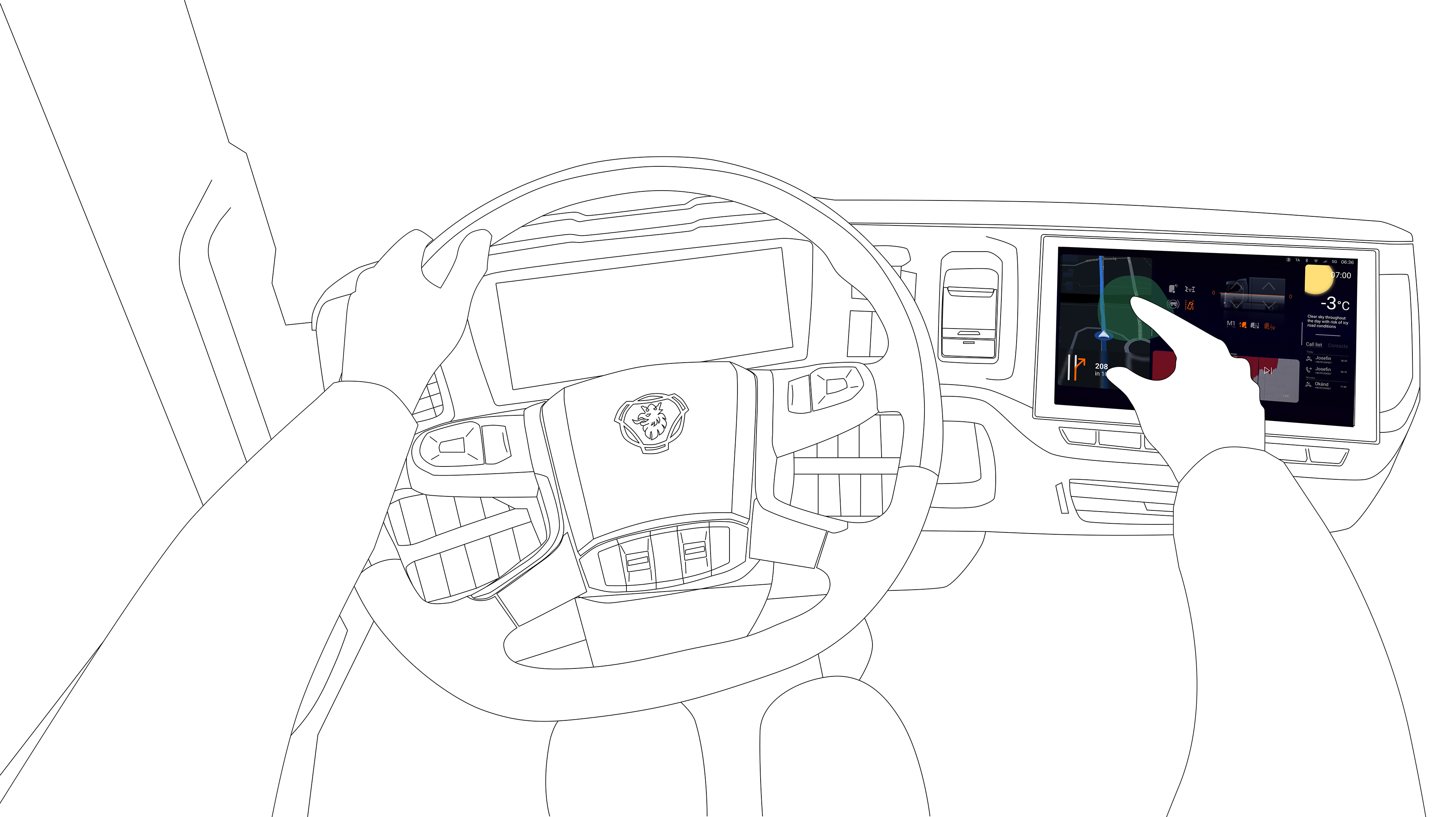 The digitalisation of the Automotive industry has led to the gradual replacement of traditional physical controls in truck cabins with touchscreens—a trend expected to continue for the foreseeable future. This shift presents both opportunities and challenges for truck drivers, particularly in terms of functionality development, usability, and safety. Since truck drivers operate in complex, demanding, and varied environments, it is crucial that interfaces are intuitive and minimise distractions.