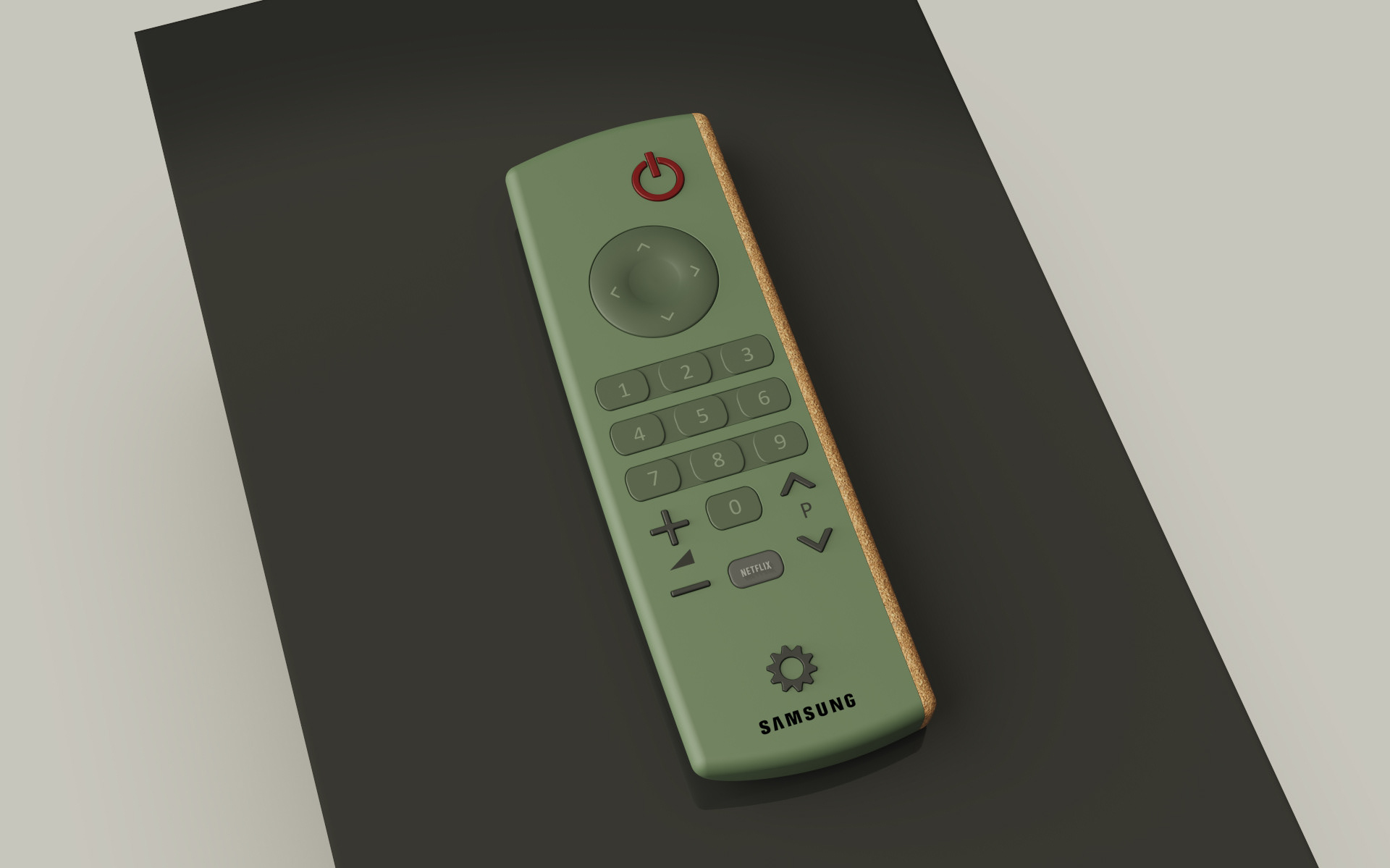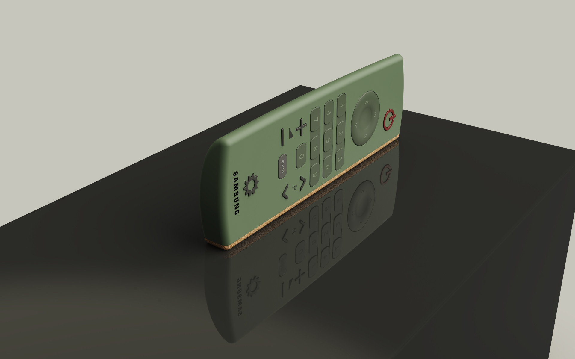 I chose to design the remote with aesthetic cues inspired by Samsung products, aiming for a sleek, minimal, and modern look that could blend in with other interiors.